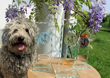 Zertifikate von Puli-Dance.de![]() ![]() ![]() Ich freue mich riesig, dass ich euch eine neue Art von Zertifikaten anbieten kann. Es gibt Trick-, Heelwork- und Choreo-Zertifikate mit einem Punktesystem, schönen Pokalen als Belohnung, und es gibt keine vorgeschriebenen Tricklisten. Alle Teilnahmebedingungen und Infos hier: Teilnahmebedingungen und Durchführung Die Zertifikate sollen für alle Hundetypen problemlos machbar sein, deswegen gibt es keine Tricklisten. Apportiert ein Hund nicht gern, oder findet ein Hund Requisiten gruselig, dann ist das hier kein Problem. Alle Tricks sind erlaubt, die dem Hund Spaß machen. Ängstliche Hunde können ihre Choreographien mit ihren Besitzern in der vertrauten Umgebung zeigen, denn nicht für jeden Hund ist die Turnieratmosphäre machbar. Sollte ein Handicap vorliegen, dann schreibt mich einfach an und wir passen die Punkteanzahl oder sonstige Regelungen einfach an. Anmelden könnt ihr euch mit Hilfe dieses Word-Dokumentes, das ihr mir einfach per E-Mail schickt: Anmeldeformular Die Trickliste kann mit Abgabe des Videos formlos eingereicht werden. Ich freue mich schon auf die ersten Anmeldungen! Bei Fragen könnt ihr mich unter folgender E-Mail-Adresse kontaktieren: ![]() |